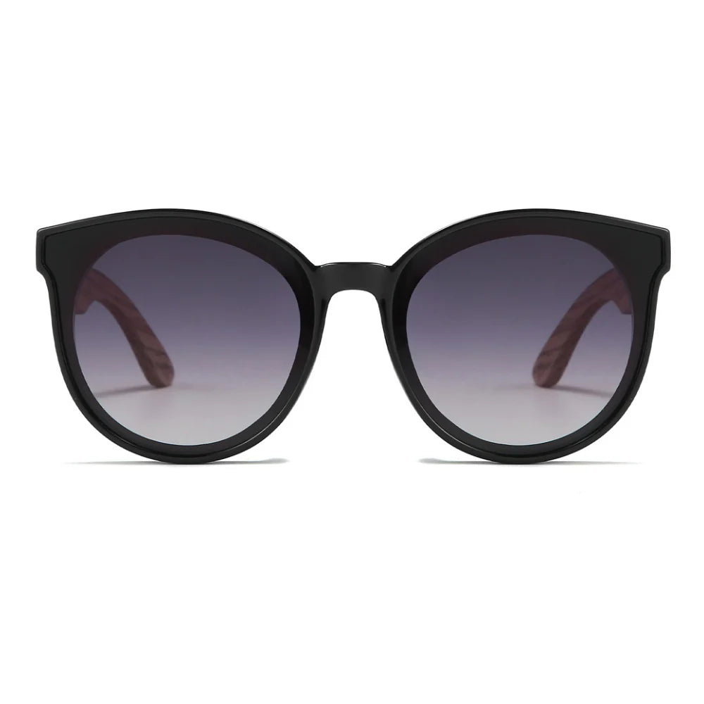 A soft and glamorous update to the classic cat eye, our Bella wooden sunglasses are an oversized style with gentle curves that suit all face shapes and sizes. Finished with a black gloss frame to create a beautiful timeless elegance.