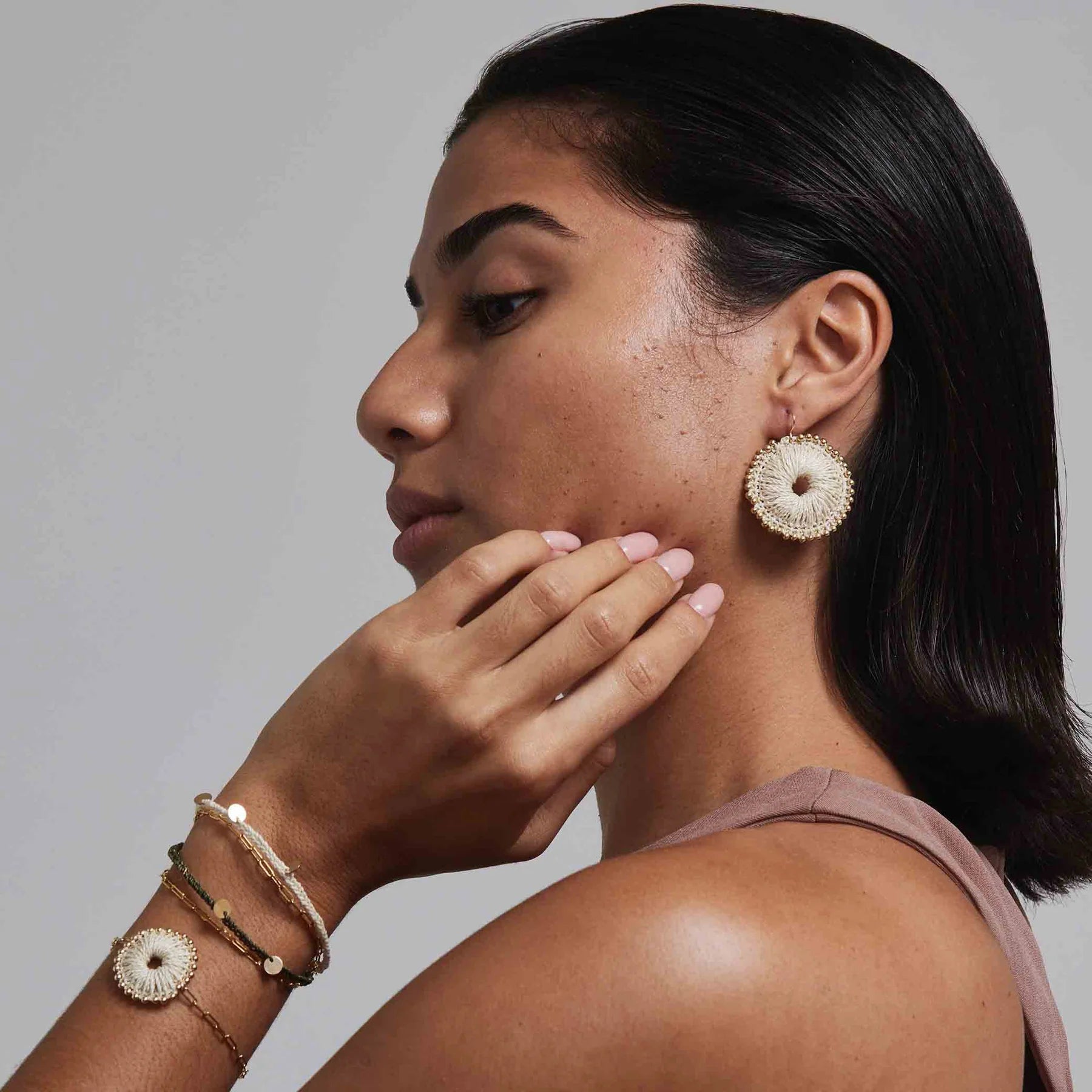 A double strand bracelet of elevated gold chain juxtaposed with an earthy, raw handwoven wristlet captures the essence of kinship; two stands drawn together and interconnected. A bracelet that will match and compliment your other jewellery that you wont want to take off.