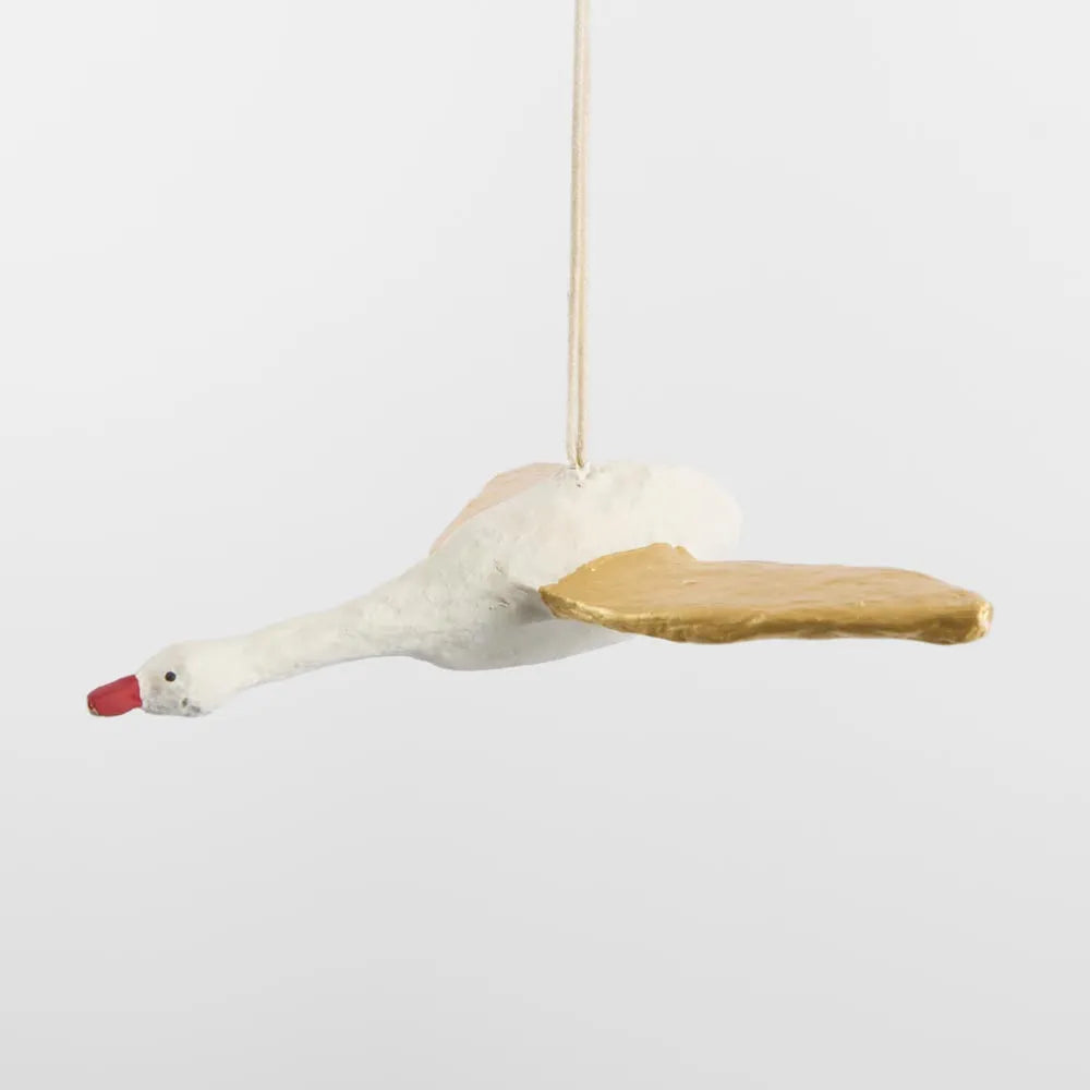 These handmade paper mache hanging decorations are unique and whimsical with hand-painted details.