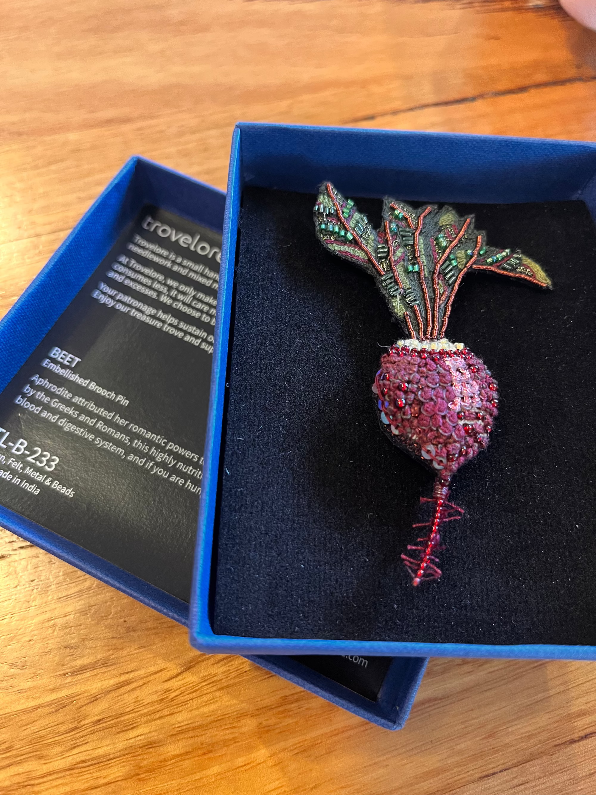 Trovelore Beetroot Embroidered Brooch Pin