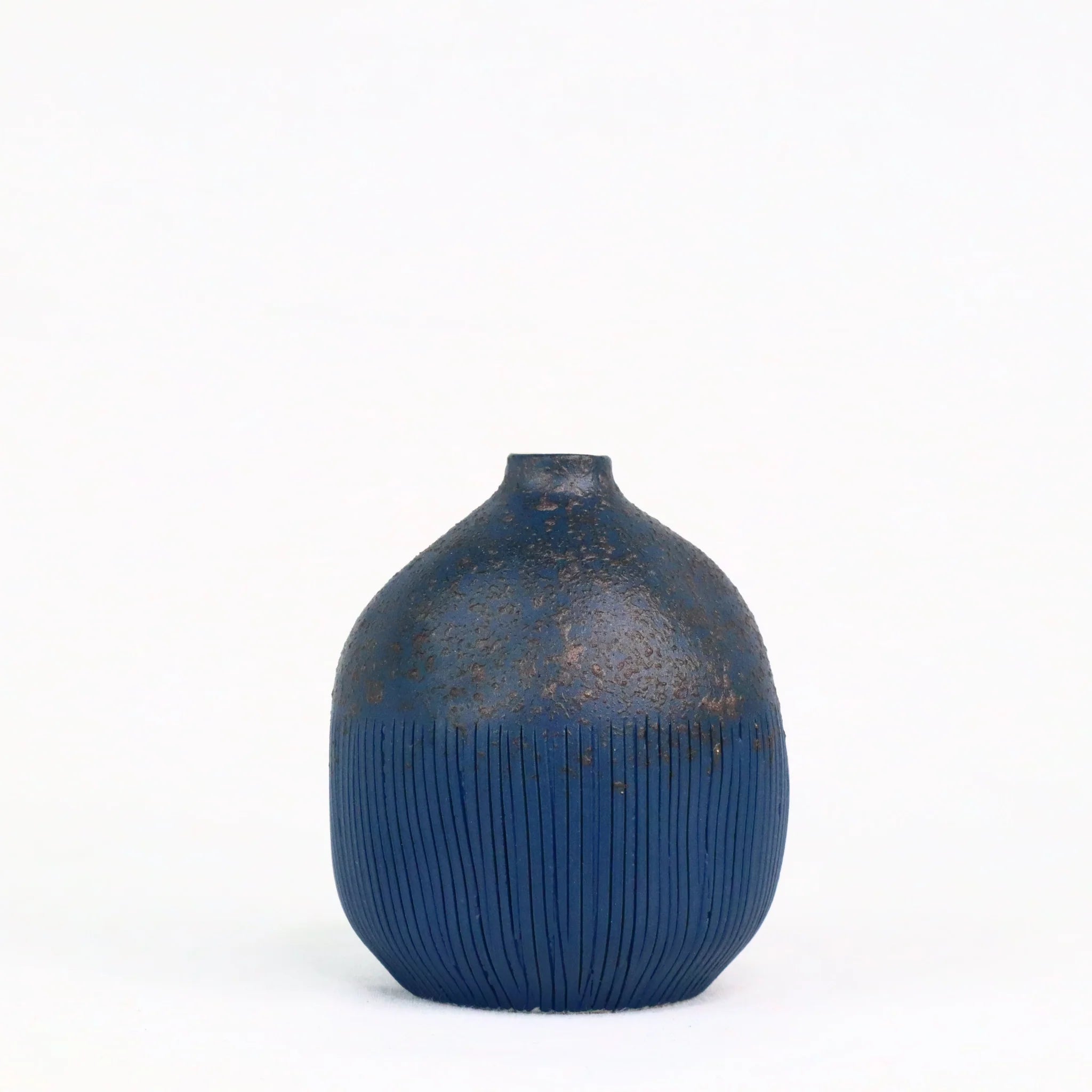 Roshi Cucumis Ceramic Small Vase in Blue Speckle