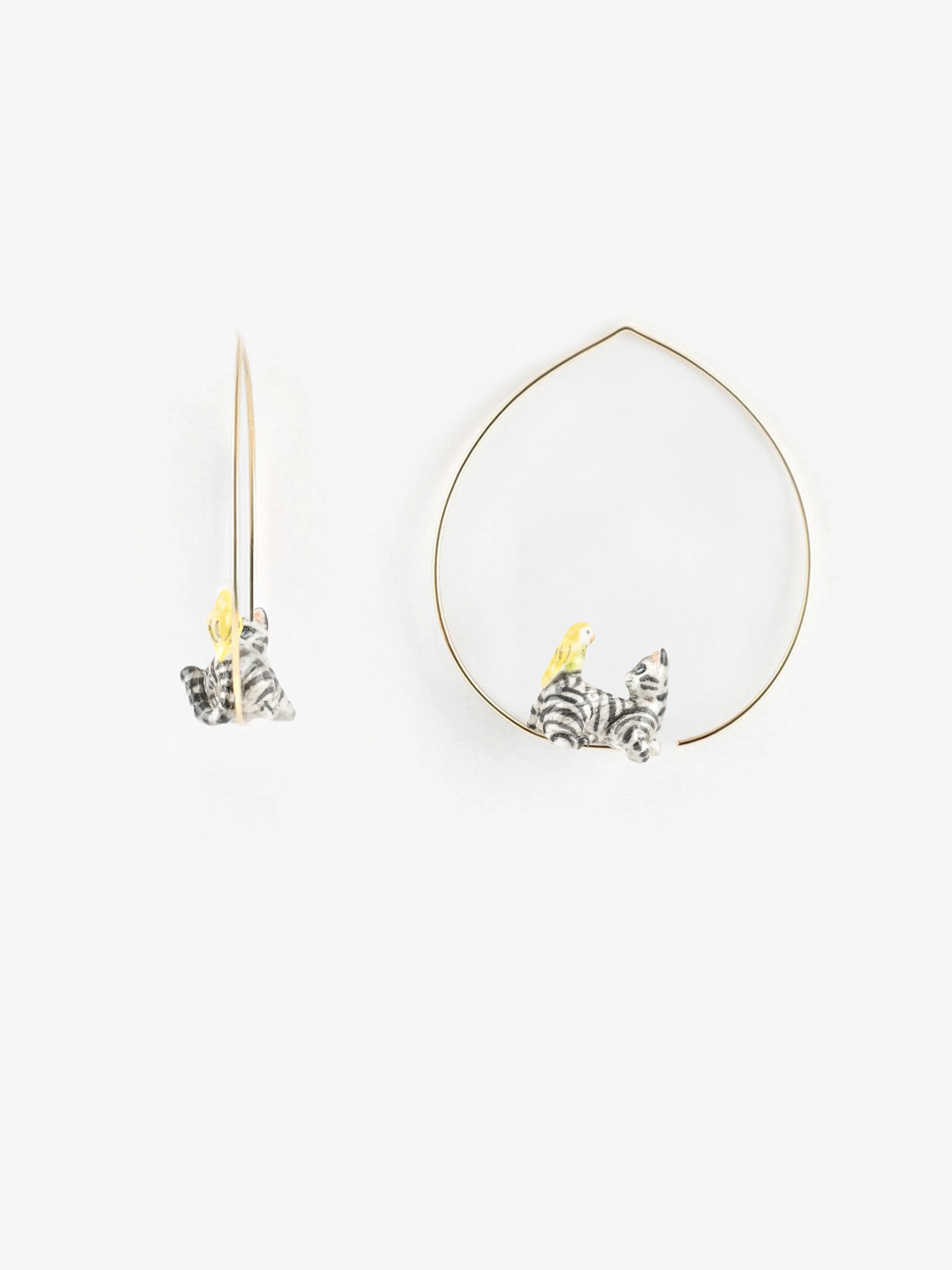Tabby Cat & Bird Hoop Earrings