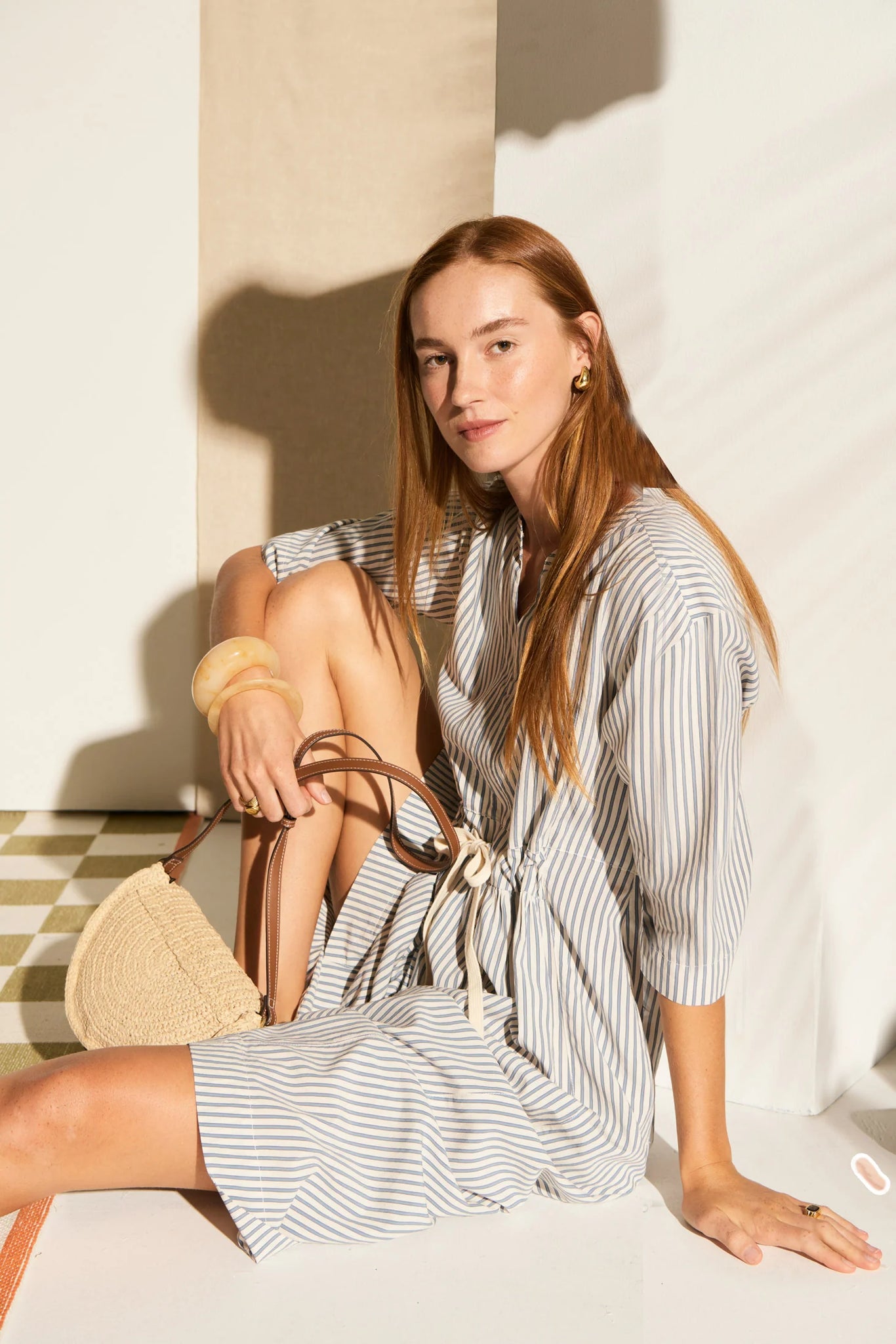 The Vera Shirt Dress features a favourite POL silhouette in a beautiful light blue pinstripe.